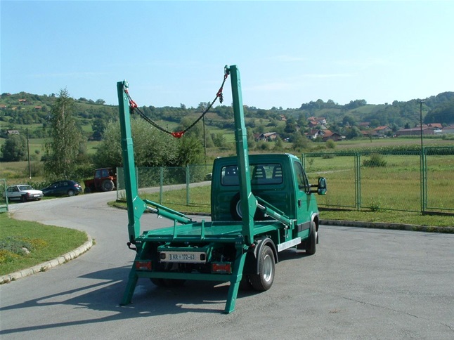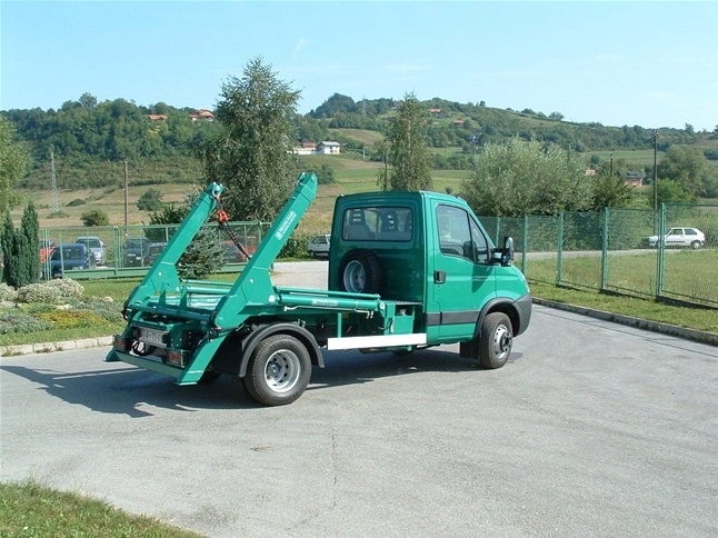 Standardna izvedba: Samopodizač kontejnera sa stražnjim hidrauličkim stabilizatorima Bez poprečne grede za otvorene kontejnere Montaža na vozilo ukupne mase 5 – 7,5 tona Međuosovinski razmak